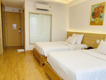 Не дают пляжных полотенец, хотя на Фукуок люди приезжают однозначно с намерением посещать пляж. В номерах нет сейфов - это очень плохо, мы беспокоились о сохранности ценных вещей. На ресепшене только одна девушка говорит по-английски, в остальных сменах вообще ни слова не понимают, это ужасно неудобно. Как и везде здесь, кондиционеры дуют непосредственно в кровати, а светильники в их изголовье отсутствуют. Чистота в номере... ну, относительная, спасает то, что здание довольно новое, но уборка, как принято, чисто формальная.