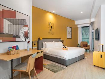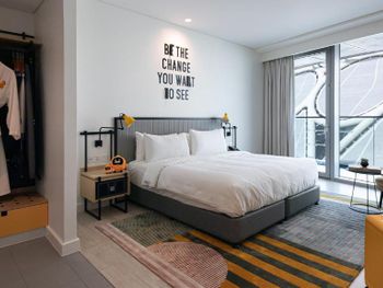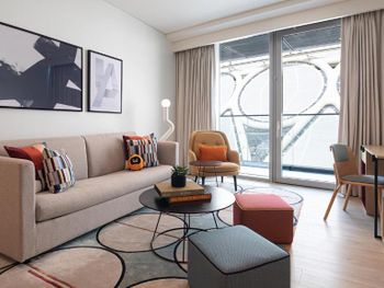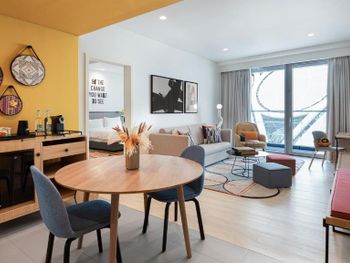A new hotel, conveniently located very close to the final metro station (you leave the hotel on an empty train, which is very comfortable). It’s also close to Al Maktoum Airport, which is ideal if you're arriving or departing from there. The staff is friendly and helpful (we had a delivery, and they received it and brought it to our room). There's an interesting view of the Expo Center dome, which is especially impressive after sunset. The room has all the necessary amenities, and the lobby bar offers plenty of comfortable spots to work. The rooms are very bright, with good Wi-Fi and a powerful air conditioner. And the main advantage — the price.
