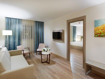 Персонал внимательный, номер предложили двухкомнатный, это была приятная неожиданность. Все необходимое в номере было, чисто.