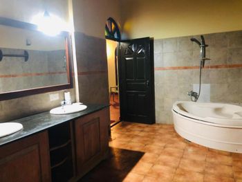 Мы жили в вилле на втором этаже прямо над рестораном, это отдельное от основного отеля здание. Древняя мебель, обстановка и потрепанность стен нас скорее порадовали, чем огорчили. Витражные стекла - просто бомба. Чувствовали себя героями какого-то фильма))) Огромная бестолковая комната с кучей кроватей, столом и стульями посередине)) Мы жили там всего три дня и все три дня кайфовали от необычности обстановки и от того, что нас впятером поселили в одну огромную комнату без перегородок. Дольше мы бы конечно так жить не смогли)