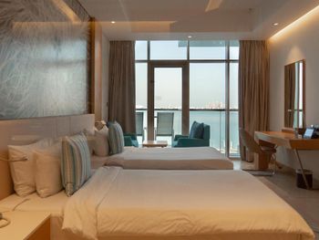 Крохотный бассейн, маленький пляж, недостаточно лежаков, общий уровень отеля не соответствует заявленным 5* Частичный вид на море - надо выйти на балкон, чтобы увидеть кусочек моря в трехстах метрах между соседними отелями. Не пользуйтесь услугой вызова такси. В лучшем случае после торга получите ту же цену, что и в Яндекс такси или Careem, но поедете на не очень чистой, возможно, маленькой машине без счетчика. Вас постараются повезти без платных дорог, что увеличит время в пути