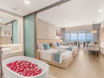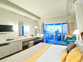 Элегантные номера с гостиным уголком оснащены кондиционером и телевизором с плоским экраном и кабельными каналами. Из окон открывается живописный вид на море. В числе удобств всех номеров — сейф, рабочий стол и мини-бар. В собственной ванной комнате с ванной предоставляются бесплатные туалетно-косметические принадлежности и фен.