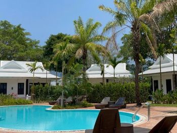 Чистая ухоженная территория. Очень зелено, уборка каждый день территории и номера. Приехали поздно, ресепшен был закрыт, но ключ был на охране от номера. Помогли занести вещи. Все отлично. Номера большие удобные. Кровати и матрасы очень удобные .
