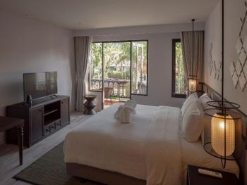 Просторные номера обставлены современной мебелью. В распоряжении гостей собственный балкон или патио с видом на бассейн и сад. Номера удобно расположены вокруг бассейнов курортного отеля. В числе удобств сейф, мини-бар и принадлежности для чая/кофе.