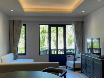 Просторный номер. Два бассейна в том числе детский, что очень удобно. Красивая территория, есть парковка для автомобиля. Кондиционеры не шумят.