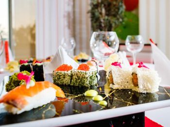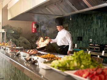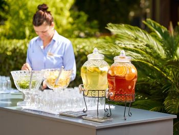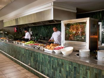 Для гостей сервируется завтрак «шведский стол», континентальный завтрак или полный английский/ирландский завтрак. При Royal Garden Beach Hotel работает ресторан, где подают блюда китайской кухни, блюда голландской кухни и блюда итальянской кухни. По запросу для гостей приготовят вегетарианские, халяльные и безглютеновые блюда.