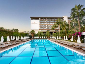 Читала отзывы о данном отеле на всех сайтах, в итоге ни один плохой отзыв не подтвердился! Отель превзошел ожиания! Wi-fi на всей территории отеля, в том числе в номерах. Прекрасный большой песчано-галечный пляж. В отеле запрещено занимать лежаки. Жаль, что не все прислушиваются к этому правилу, но все же в любое время можно было найти свободный лежак и даже три рядом. Вкусная и разнообразная еда в ресторане. Если приходить в открытию ресторана, то могут быть очереди за едой, но если приходить чуть позже, то очередей нет. Официанты быстро убирают столы, меняют скатерти при необходимости, раскладывают приборы, даже приносят напитки. Доп услуги в отеле не навязывали. Пляжные полотенца мягкие, приятные. Широкий ассортимент алкогольных напитков. В отеле отдыхает много пенсионеров и это прекрасно: они не шумят и не доставляют неудобств. В баре готовят кофе по-турецки, очень жаль, что я узнала об этом перед отъездом. Персонал понимает ходовые фразы на русском, в основном говорят на английском. У нас был номер на 5 этаже, с видом на бассейн. С открытой балконной дверью очень шумно от дороги, но шумоизоляция очень хорошая - с закрытой дверью полная тишина. Отличные шторы блэкаут.