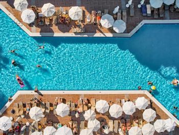 Окна некоторых номеров выходят на танцпол анимацию.Очень громко до 23/30. Сюда же доносится звук из соседнего отеля- MC Beach