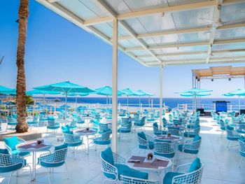 Плавающий пантон. Очень громкая музыка около бассейна мешает спокойному отдыху на пляже. Слабый вайфай. Пляж убирается плохо. После небольшого шторма на пляже на спуске к морю сломался поручень у лестницы, за 14дней его так и не починили.