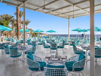 Ресторан – для Египта, просто супер. Да, ассортимент по сравнению с другими отелями этой же сети – скромнее, но выбор есть и все вкусно. Поварам – респект! Как совет, не оставляйте еду на столах без присмотра. Или ее уберут официанты, или утащат вороны) К слову сказать, официанты нацелены только на уборку столов. С одной стороны, это хорошо и всегда есть свободные столики (сервируют быстро), а с другой стороны, за напитками проще сходить к бару т.к. банально, можно не дождаться официанта.