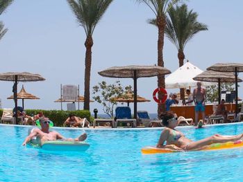 Расположение и питание в отеле-одно из лучших.Красивый коралл со множеством рыб ,много фруктов:гранаты, виноград,дыня. В отеле 90%-украинцы,много детей,весело,вечером до 23.00 музыкальное шоу. Можно выйти погулять в город-в шаговой доступности знаменитый ресторан морепродуктов Фарез,Есть различные магазинчики, кафе, аптеки.Рядом шоу Альф-Лейла-Валейла,где есть различные животные,кафе. В отеле даже есть один бассейн,где можно купаться в любое время-остальные закрываются в 17.00 на дезинфекцию.Важно!При отеле есть врач,который принимает по всем видам страховок!