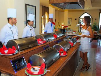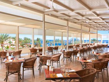 Ресторан – для Египта, просто супер. Да, ассортимент по сравнению с другими отелями этой же сети – скромнее, но выбор есть и все вкусно. Поварам – респект! Как совет, не оставляйте еду на столах без присмотра. Или ее уберут официанты, или утащат вороны) К слову сказать, официанты нацелены только на уборку столов. С одной стороны, это хорошо и всегда есть свободные столики (сервируют быстро), а с другой стороны, за напитками проще сходить к бару т.к. банально, можно не дождаться официанта.