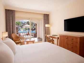 Территория отеля очень зелёная и уютная. Номерной фонд требует обновления, но не критично. Мы едем на море, а не в номере сидеть. Ребёнку поставили полноценную кровать, а не раскладушку. Питание разнообразное и вкусное, отдельного детского стола нет, но деток старше 2 лет можно найти чем покормить. Заход в море по понтону, можно по колено зайти с берега. Малышам есть небольшой кусочек песчаного пляжа. Риф довольно хороший, не мертвый. Много разных рыбок, скаты, мурены, иногда приплывает черепаха. В guest relation замечательные сотрудницы!!! Всегда оперативно реагируют на любые просьбы и замечания, всегда поинтересуются как проходит отдых и все ли устраивает. Огромная им благодарность!!!!!