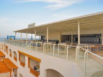Отель переполнен туристами (преимущественно из Украины) и не справляется с потоком туристов. Повсюду очереди, не хватает лежаков у моря. В ресторане не оперативно убирают грязную посуду и сервируют столы. Бесплатный вай-фай на ресепшен практически не работает. Выбор еды не большой, мясо и рыба выдаётся порционно в руки в небольших количествах и чаще всего с подгоревшей корочкой от гриля.
