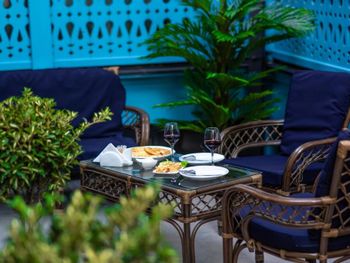 Окно выходило на соседнюю стену, а внизу была терраса, шум от людей достаточно мешал. Не хватало только кофемашины для любителей кофе.