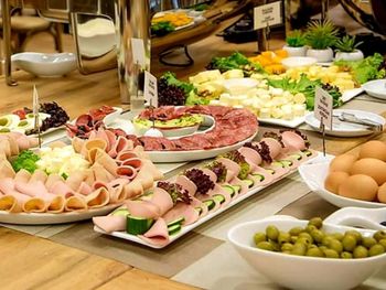 Завтрак отличный с 8 до 11, нарезка, салаты, на выбор несколько горячих блюд, выпечка и фрукты. Не хватало только кофемашины для любителей кофе.