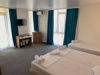 Все было великолепно! Отель новый, при бронировании не было отзывов, немного сомневалась! Но зря! Написала администратору, попросила при возможности дать номера рядом, так как бронировали три номера. Сделали все , как просила. По приезду тоже пошли на встречу, разместили раньше, так как номера уже были готовы! За это отдельное спасибо 😍. Расположение отличное , через дорогу море. Проходишь через небольшой парк. На территории есть бассейн. Это прекрасно. Пару дней были волны, мы купались в бассейне! При отеле есть красивый ресторан , за отдельную плату можете заказать завтраки. По вечерам бывает живая музыка. Рядом с отелем есть магазины , кафешки ! Цена-качество соответствует!