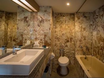Большой отель, с хорошими просторными номерами. Прикольно, что из ванный видно, что происходит в номере и даже видны горизонты города. В номерах убирают постоянно, не факт, что меняется белье каждый день, но чистенько. Фен, холодильник, по две бутылки воды ставят каждый день.
