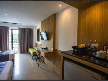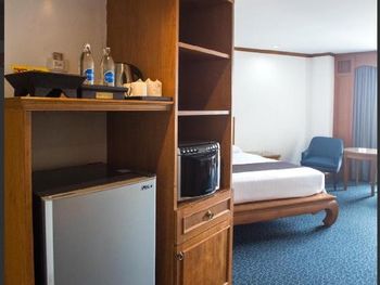 В моем номере не оказалось стандартных двух кресел и столика. Зато был большой холодильник. Отель дружелюбен к гостям постояльцев. Но если вы с детьми и не поддерживаете лгбт и проституцию, то вам сюда не нужно. Если вам плевать и хотите сэкономить, то можно.