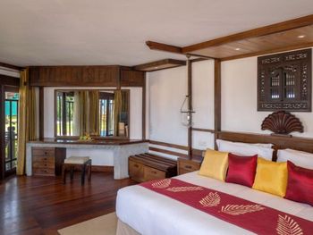 Номера оформлены в теплых тонах и обставлены мебелью из резного дерева. В номерах есть кондиционер и ванная комната с ванной, феном. В числе других удобств спутниковое телевидение и принадлежности для чая/кофе.