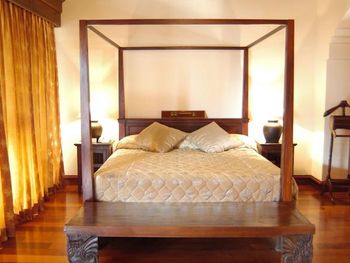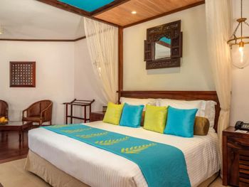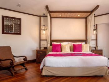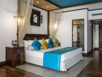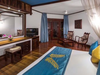 Номера оформлены в теплых тонах и обставлены мебелью из резного дерева. В номерах есть кондиционер и ванная комната с ванной, феном. В числе других удобств спутниковое телевидение и принадлежности для чая/кофе.
