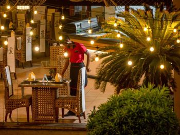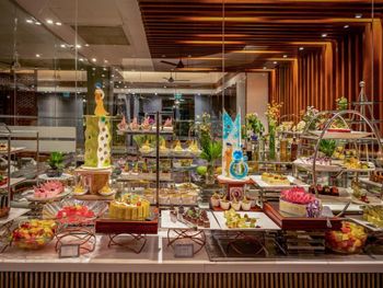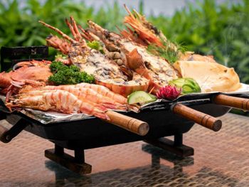 В главном ресторане сервируют блюда интернациональной кухни по системе «шведский стол» и блюда западной кухни. С ресторанной террасы на свежем воздухе открывается вид на пляж. У бассейна работают кофейня (круглосуточно) и 2 бара.