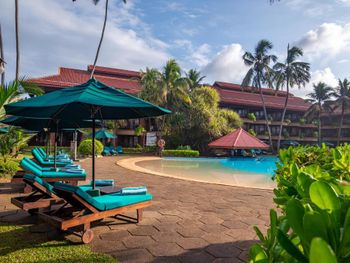 В отеле не хватает зонтиков от солнца, приходилось занимать рано утром. В первый наш день в отеле, мы вышли на пляж после 9-00 , свободных зонтиков уже не было, и как результат, мы перегрелись, и вынуждены были через час уйти с пляжа, и кроме того, мы заметили, что работники отеля, которые обслуживают бассей устроили из занимания шезлонгов и зонтов бизнес, за оплату занимают их для туристов. Завтрак в отеле заканчивается очень рано в 9-30 - нужно продлить хотябы до 10-30. И самое необычное - нас в последние сутки уговаривали переселиться в соседний отель Танжерин, отелю зачем-то понадобился наш номер. По итогам отдыха не смогу рекомендовать отель своим знакомым и родственникам, хотя и считается что для Шри Ланки это неплохой отель.