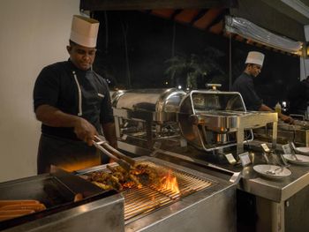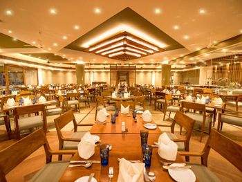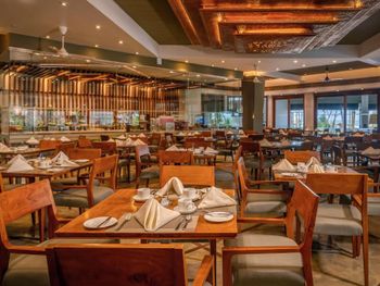 В главном ресторане сервируют блюда интернациональной кухни по системе «шведский стол» и блюда западной кухни. С ресторанной террасы на свежем воздухе открывается вид на пляж. У бассейна работают кофейня (круглосуточно) и 2 бара.