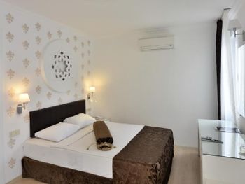 Отель отвратительный. Старый. Заселили в номер с неработающим кондиционером. Три раза приглашали инженера. Утверждали они, что все работает. Но за 7 часов работы кондиционера холоднее в номере не стало, дышать было не возможно. В одном лифте разбито зеркало, второй тоже как будто после войны. Произошёл инцидент при заселении. Пришла в 12:00, дали браслет, отправили на обед и купаться, так как заселение ближе к 14:00. Подошла на рецепшн в 13:00, с меня спросили оплату. Я достала телефон, дабы расплатиться, банковской карты с собой не было. А у них не оказалось Apple Pay. Я предлагала дождаться пару часов моего друга, чтобы тот заплатил с карты, слушать они ничего не хотели. Попытки попросить booking списать с привязанной карты деньги за номер не увенчались успехом. Booking рассматривает заявку в течении 24 часов. Мне подошёл помочь мужчина, который уже жил в отеле, на что менеджеры отеля наорали на него, якобы «не твои проблемы, вот и иди отсюда». Отношение хамское, отвратительное, меня в час пик жары выгнали за территорию отеля с чемоданом. Банкоматов в округе нет, чтобы с телефона снять наличку. Матрасы на шезлонгах, как раньше сумки рыночные были в мелкую клетку, вот из такого же материала. Какие 4 звёзды. Отель и на три еле тянет и не больше. Колхоз. А booking’у жирный минус за неоказание помощи. Спустя неделю так и не ответили. Но в отеле оказался один человек из персонала, который смог через знакомого из Western union снять мне наличку, чтобы я оплатила номер спустя хождения по улице в жару 3 часа. Плюсом у ребят из другого города украли два телефона с пляжа. Камер там нет, отель не несёт ответственность. И из номеров деньги пропадали у других туристов.