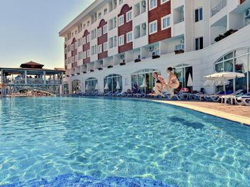 Side Royal Paradise - All Inclusive — это отель с 4 звездами на первой линии города Сиде. В распоряжении гостей сезонный открытый бассейн, фитнес-центр и сад. В числе удобств — круглосуточная стойка регистрации и ресторан, а также аквапарк и терраса. В распоряжении гостей караоке и бесплатный Wi-Fi на всей территории.