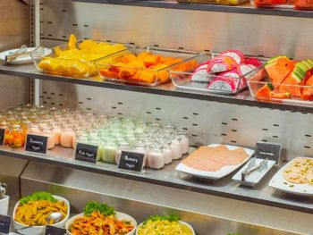 В кафе Coconut сервируется обильный ужин «шведский стол» из блюд интернациональной кухни. В ресторане Royal Kitchen с панорамным видом на залив Патонг подают изысканные блюда китайской кухни.