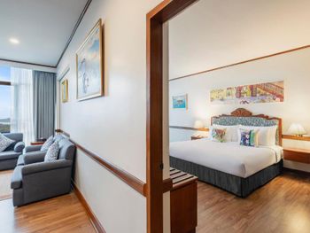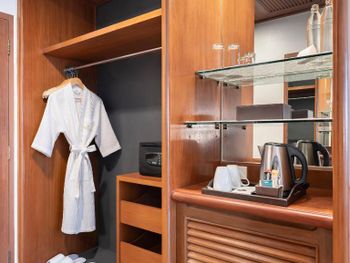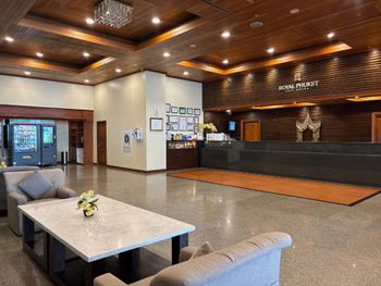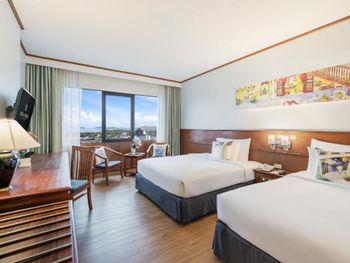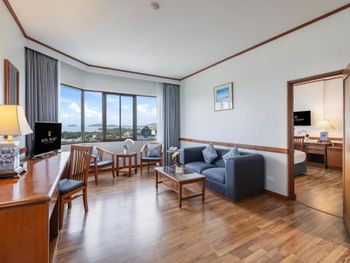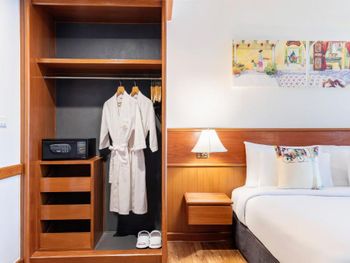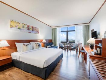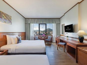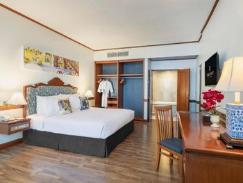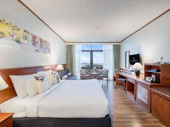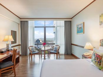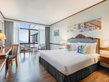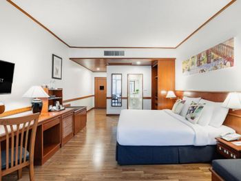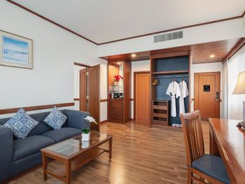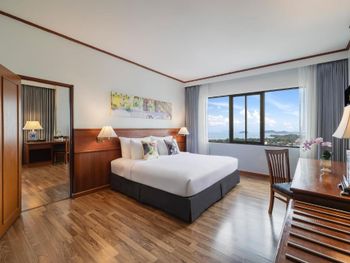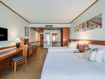Номера отеля Royal Phuket City оформлены в классическом стиле с яркими тайскими акцентами и оснащены персональным сейфом и телевизором со спутниковыми каналами. В числе удобств — гостиная зона.