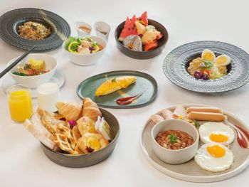 Завтрак на высоком этаже с красивым видом из окна