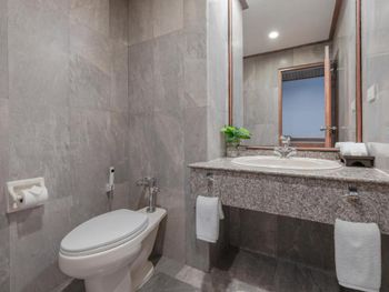В Букинг описаны 2 бассейна, в наличии один. Я заказала эту гостиницу только из-за бассейна с баром на крыше, которого не оказалось. В гостинице 5 звезд к 17:00 не убирали номер, пришлось просить принести санитарные принадлежности и полотенца. На 2 человек выделяют тюбик мыла, тюбик шампуня, круглое маленькое твердое мыло, ушные палочки и шапочку для душа. Ни расчески, ни зубных щеток и пасты не ждите здесь увидеть...