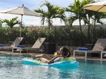 Мы брали гостиницу рядом с паромной переправой, чтобы с утра отправиться на другой остров. От гостиницы всего 7 минут на такси. Потому море и бассейн были не основными критериями. Бассейн небольшой, чистый, но на себе не проверили, не было времени.