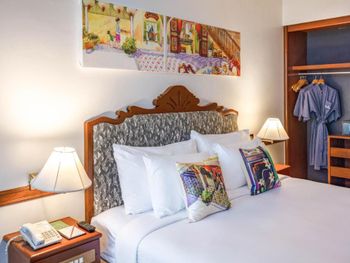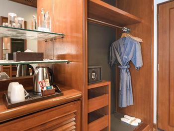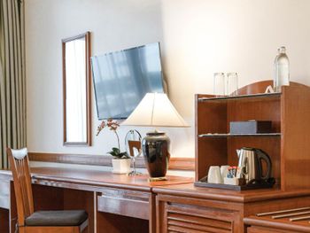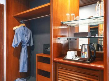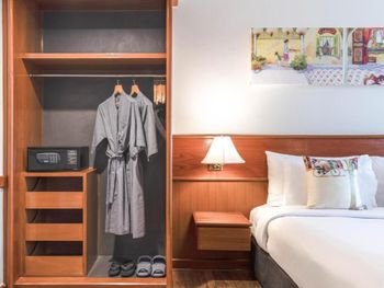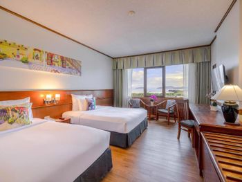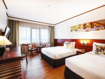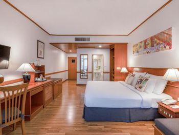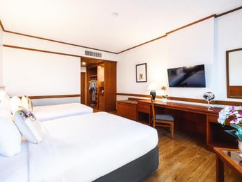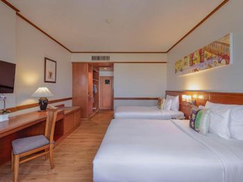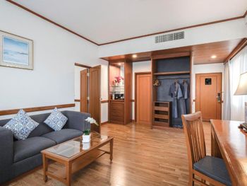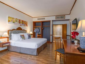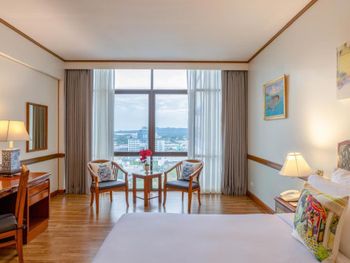 Номера отеля Royal Phuket City оформлены в классическом стиле с яркими тайскими акцентами и оснащены персональным сейфом и телевизором со спутниковыми каналами. В числе удобств — гостиная зона.