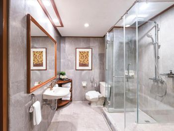 В Букинг описаны 2 бассейна, в наличии один. Я заказала эту гостиницу только из-за бассейна с баром на крыше, которого не оказалось. В гостинице 5 звезд к 17:00 не убирали номер, пришлось просить принести санитарные принадлежности и полотенца. На 2 человек выделяют тюбик мыла, тюбик шампуня, круглое маленькое твердое мыло, ушные палочки и шапочку для душа. Ни расчески, ни зубных щеток и пасты не ждите здесь увидеть... Очень шумный кондиционер, засор слива воды в раковине, дырки на постельном белье и гардинах. Недостоверная информация и отсутствие надлежащего обслуживания номеров вынуждает меня быть недовольной. Это очень низкий уровень за большие деньги.