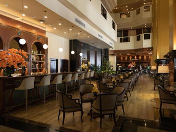 Удобное расположение, основные туристические места рядом Просторный номер Большая удобная кровать Красивый лобби, по вечерам живая музыка Завтрак на высоком этаже с красивым видом из окна