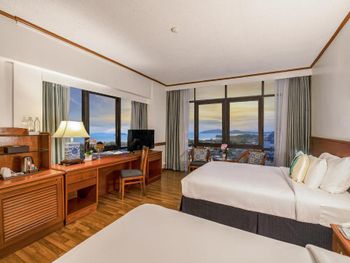Хороший большой отель, мы снимали улучшеный номер за 2,300 бат за ночь, на 17 этаже. Отличный вид из окна. Очень удобная кровать и подушки. Чистая постель. Имеются все гигиенические принадлежности, халат. Было тихо, ничего не мешало спать (но сначала шумела вентиляция, которую мы отключили и стало тихо) Отличный завтрак. Приветливый и отзывчивый персонал. Открытый бассейн на 3 этаже, там же большой тренажерный зал. Близко пирс мин 8-10 на такси, рядом старый город, можно прогуляться.