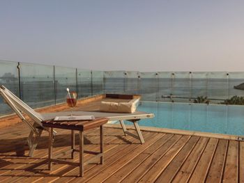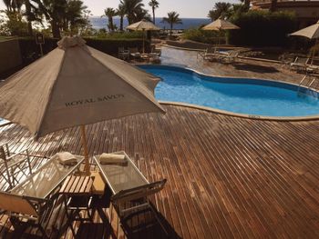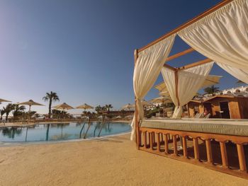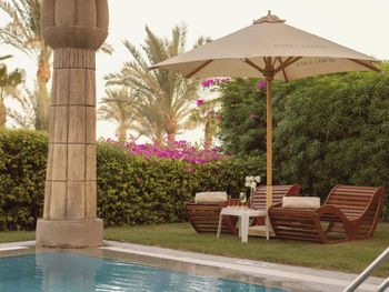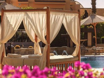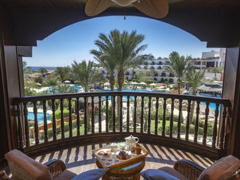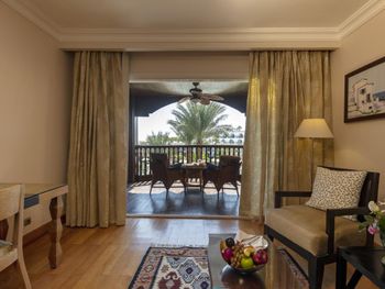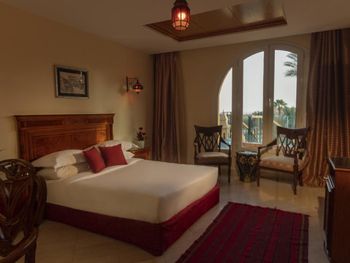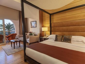 - был номер полулюкс. Номер хороший: просторный, функциональный, огромная кровать, большая ванная комната, балкон - завтраки, несмотря на, то что повторяются, были просто великолепны! Большой выбор, качественные продукты, превосходный повар. Само помещение очень уютное, людей мало - персонал приветливый, стараются помочь. Организовали бесплатный трансфер до аэропорта - свой пляж с барчиком. Персонал любезно наливает алкоголь (вино весьма не плохое, что редкость для Египте) и прохладительные напитки высокого качества. Приносят сумку-холодильник с водой и мокрые полотенца.