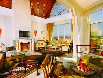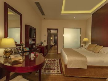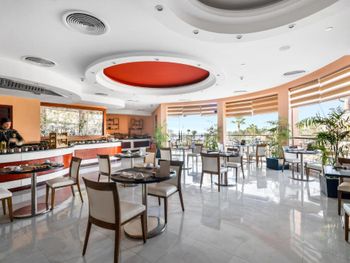 В кафе,который расположен на пляже заказ надо ждать долго...Приходится ждать у стойки - иначе могут и вообще не принести. Персонал,который работает ночью ,особенно не волнуется,что мешает людям спать. Ходят по коридору и перекрикиваются друг с другом. Никаких шансов выспаться для тех,кто ночует в гостинной.Поужинать вкусно - проблема...Есть несколько кафе-ресторанов(итальянский,греческий,арабский,рыбный) ,но впечатление,что все готовят на одной кухне,одинаково и не вкусно. Основной негатив - ужасный интернет !!!!! Для 5 звездного отеля это недопустимо !!!