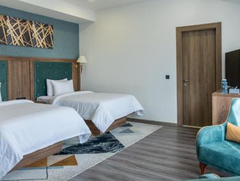 Это САМЫЙ ужасный отель в Грузии в котором мы останавливались. Из заявленных пяти звезд максимум две. Номер специально был забронирован для некурящих, но ночью очень воняло сигаретами, Кондиционер не работал, чистили и ремонтировали его при нас. Уборка за весь период не производилась. Вид из окна был на часный сектор со старенькими домами. Магазины, метро, рестораны все очень далеко от отеля, передвигались только на такси. Пешком невозможно погулять, так как при выходе из отеля попадаешь сразу на трассу. Кухня только Индийская, мне было очень невкусно. Заявленный ресторан не всегда работал, и из меню была только пицца. Никому не рекомендую останавливаться в этом отеле.