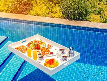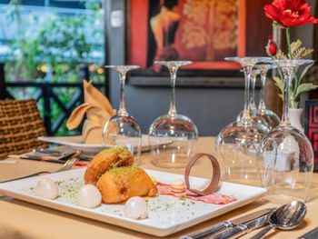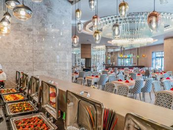 Для гостей сервируется завтрак «шведский стол», континентальный завтрак или американский завтрак. При Royal Wings Hotel работает ресторан, где подают блюда китайской кухни, блюда индонезийской кухни и блюда итальянской кухни. Гости могут попросить приготовить вегетарианские, халяльные и безглютеновые блюда.