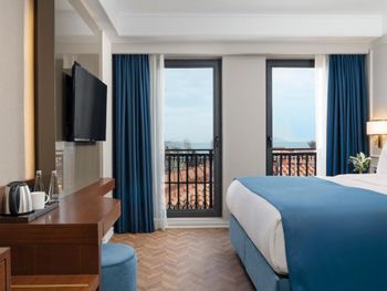 В номерах в Royan Hotel Hagia Sophia, a member of Radisson Individuals установлен кондиционер, телевизор с плоским экраном и сейф. Среди прочих удобств — письменный стол, чайник и мини-бар, а также собственная ванная комната с душем. В собственной ванной комнате есть бесплатные туалетно-косметические принадлежности. Гостям Royan Hotel Hagia Sophia, a member of Radisson Individuals предоставляются постельное белье и полотенца.