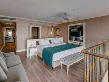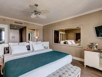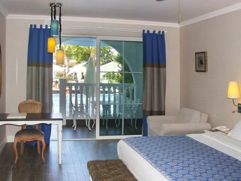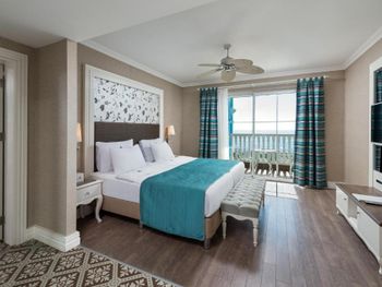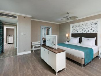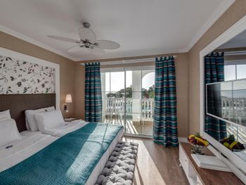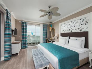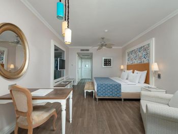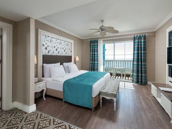 Номера курортного отеля Rubi Platinum со вкусом обставлены современной мебелью и располагают телевизором с плоским экраном со спутниковыми каналами и бесплатным Wi-Fi. Из некоторых номеров открывается вид на море или бассейн, а некоторые номера оборудованы гидромассажной ванной.