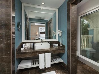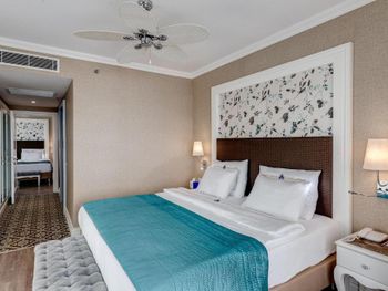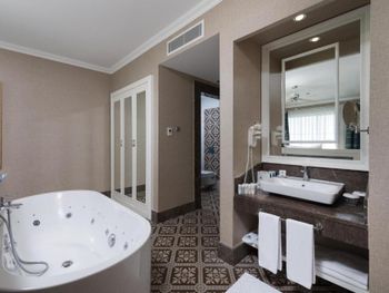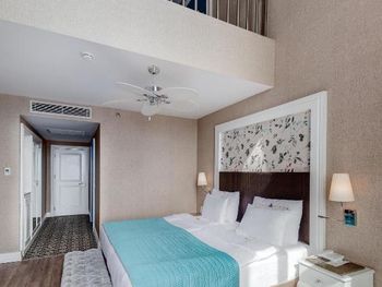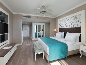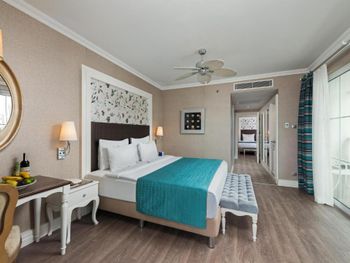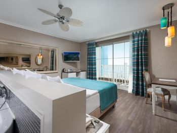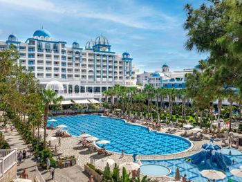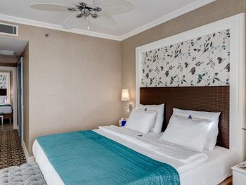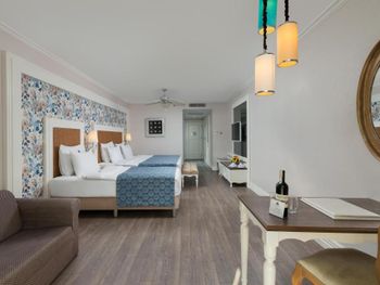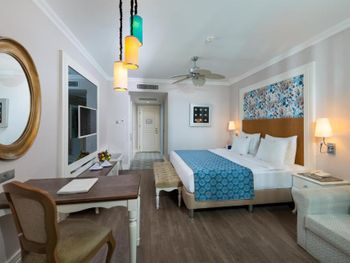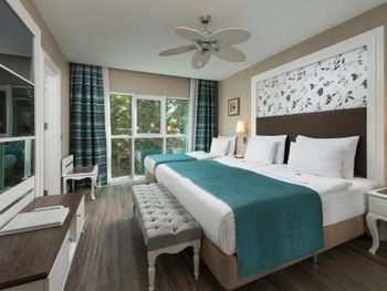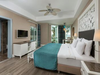 Были семьей 2 взр и 2 ребенка. Номер был отличный - одна комната, но большая и большой балкон. душевая с туалетом раздельно - это просто супер. С 2-мя детьми в номере было очень комфортно. В номере очень чисто, кровати белье хорошие. Детская анимация великолепная, летский коуб супер. Площадка возле клуба хорошая с каруселью. Вечером после мини диско ее включают в 21:00. Минидиско в 20:30. На минидиско дети бежали и ждали его. Очень весело и зажигательно, для детей свой амфитеатр. Можно смело сказать, что Отель - детооринтированный. Единственное чего не хватало - это подогреваемого детского бассейна. Были в конце апреля. Был теплым бассейн в аквапарке и крытый бассейн. Вот в этих двух бассейнах было конечно очень много людей - потому как отель конечно огромный и людей отдыхает много. Взрослая анимация тоже хорошая. Вечерние шоу понравились. Спа тоже отличный. Брали массаж - неплохой. Еда отличная. Хороший пляж с лагуной, волн ниразу не видела за время нашего проживания. С удовольствием бы вернулась в сезон, чтоб и в море можно было покупаться.