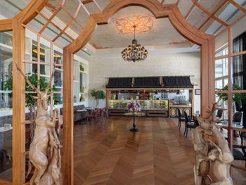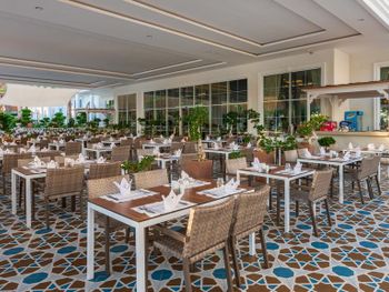 Ресторан - это трагедия и не уровень этого отеля. Дело не в том, что еды не хватает или она не вкусная. Еды много, даже слишком. Но много - за счет того, что перемешивается еда свежая и качественная с едой с прошлых ужинов, обедов и завтраков, из нее делают какие-то дикие салаты и сэндвичи, непрезентабельные, заветренные, которые даже не меняют местами чтобы скрыть убогость таких экспериментов. Для меня это все закончилось отравлением в день отъезда :-(. Далее, около йогуртов стоят плоские тарелки, около салатов - глубокие. Чайные ложки - только если берешь кофе. Отдельно взять чайные ложки проблема. Нужно отлавливать официантов, которых постоянно то ли не хватает, то ли они делают вид что очень заняты. Бокалы частично старые и мутные, частично неподходящих форм. Нормальное явление, когда на одном столе стоит в этом бокале пиво, на другом вино. Вишенкой на торте стало день рождения ребенка. На стойке Guest relations в ответ на просьбу, если можно заказать маленький тортик со свечкой ,мадам из, кажется Туркмении, сказала, что в этом ресторане так не принято. Могут принести тортик в номер, а мы можем сами отнести его в ресторан к ужину. Ок. Сделано. Скромно, но все же. Каково было наше удивление и огорчение 9-летнего сына, когда на следующий день для 3х столов, празднующих дни рождения детей и взрослых в зал под песню Happy birthday, вносились торты, украшенные свечами и бенгальскими огнями.