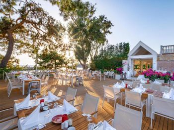 По утрам для гостей сервируют обильный завтрак «шведский стол», а на ужин подают уникальные блюда средиземноморской кухни. Гости также могут посещать 4 ресторана с обслуживанием по меню, где предлагают блюда различных кухонь.