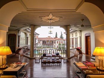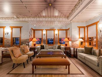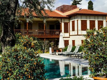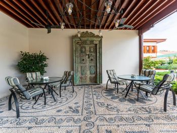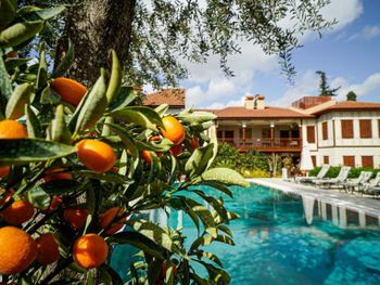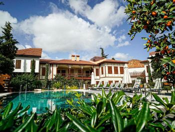Территория включает бассейн с подогревом, небольшую парковку, ресторан и много зелёной территории. А ещё здесь есть в полу руины старого города, они закрыты стеклом и подсвечены в вечернее время. Очень аутентично))
