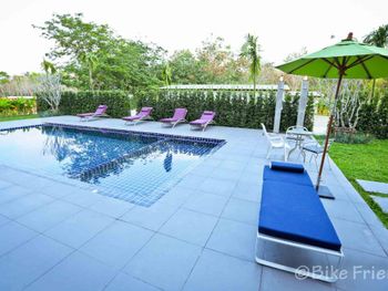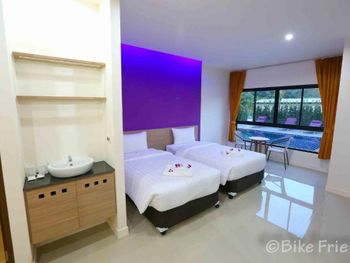 Чистота, номера с выходом прямо в бассейн, удобные кровати, мощные кондиционеры, очень лояльный персонал. Мы снимали два номера на первом этаже, жили с двумя маленькими детьми - дополнительные кроватки стоили по 400 бат в день за каждую, персонал бесплатно поставил нам по дивану в каждый номер 🙏🏻. Самолеты слышно очень редко и это не напрягает, пляж недалеко, после 17 вход на пляж (через заповедник) бесплатно, с 10 до 17 - 200 бат.
